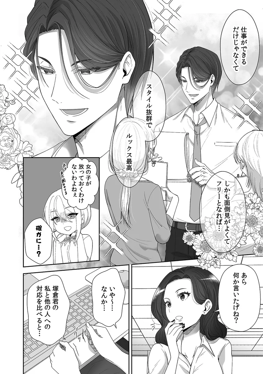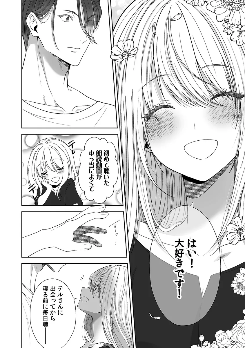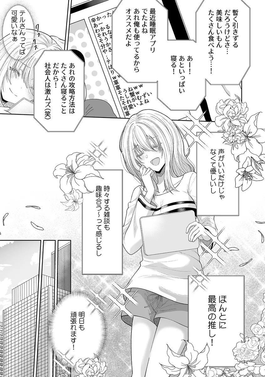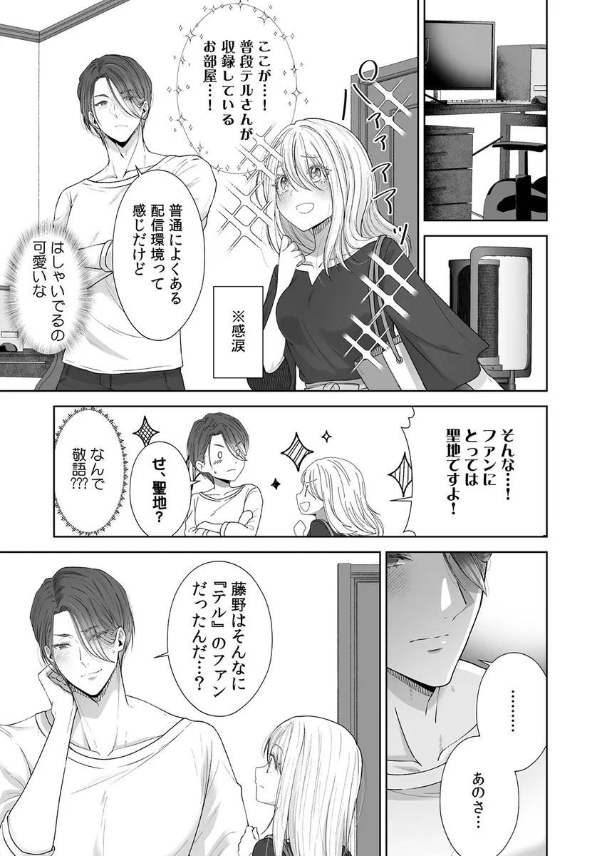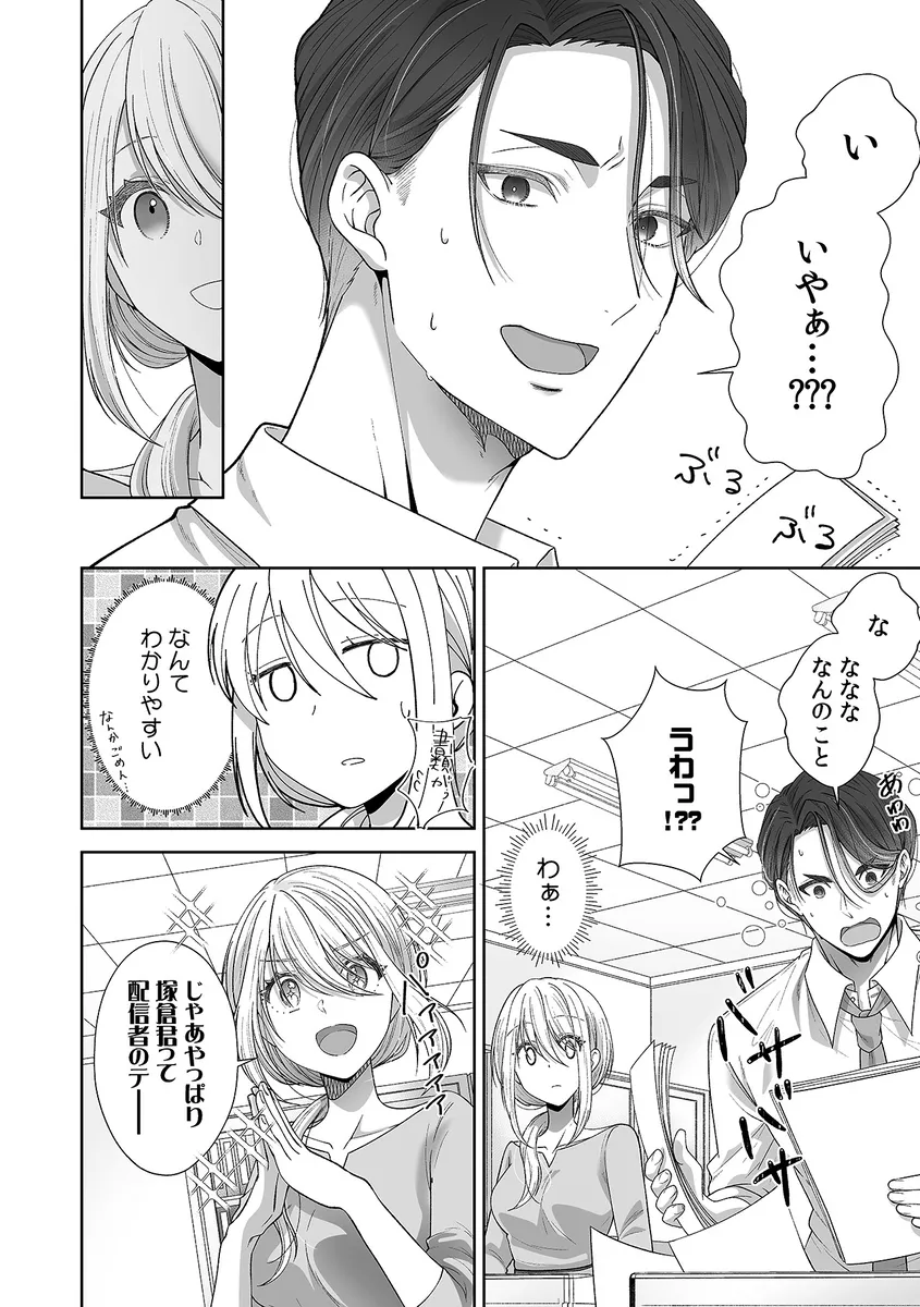 25歳のOL詩。詩には何かと詩のことを子ども扱いしてくる同僚瑛太。瑛太はルックスは抜群で今日も詩のミスを瞬時に指摘して仕事もかなりできる。女子社員からは注目の的となっている。どうして詩には周りと対応が違うのか、詩は鈍感で気付かない。そんな時、詩は瑛太の声が推しの配信者と似ていることに気付く。思い切ってもしかして配信でもしてる?と聞くと明らかに動揺する瑛太。なんてわかりやすい…。そして、詩の推しの配信者が瑛太であることが判明する。会社には絶対に秘密にするということを約束して、瑛太の配信部屋にお邪魔する詩。そこでいきなりキスをされて…。
