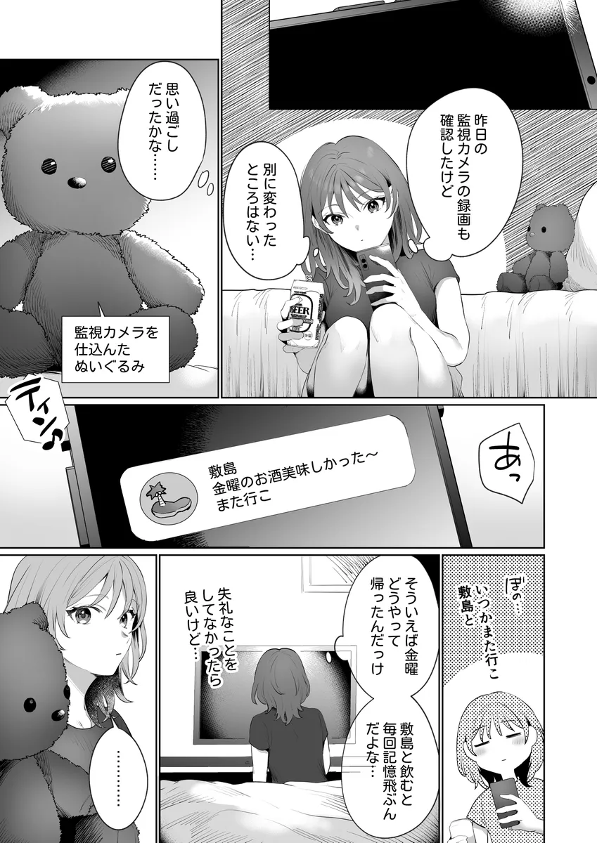 これは盗撮でも企画ものAVでもない。間違いなく麻帆が自分の部屋に自分の手で仕掛けたカメラが捉えた映像だ。そこには同期の敷島にハメられる自分の姿が映っていた。麻帆は酔いつぶれて一向に起きる気配がない。麻帆は、寝たまま敷島に犯されていたのだ。そんな敷島は、顔良し業績良しの社内では人気者。女子の視線も熱い。事の発端は数週間前に遡る。たまたま飲食店で敷島と一緒になった麻帆。最初は気まずかったが、意外と話が合って意気投合。気が付いたら毎週末一緒に飲む仲になっていた。次第に麻帆は敷島に惹かれていく。そして、ついついお酒を飲みすぎてしまいついに事件が起きる…。
