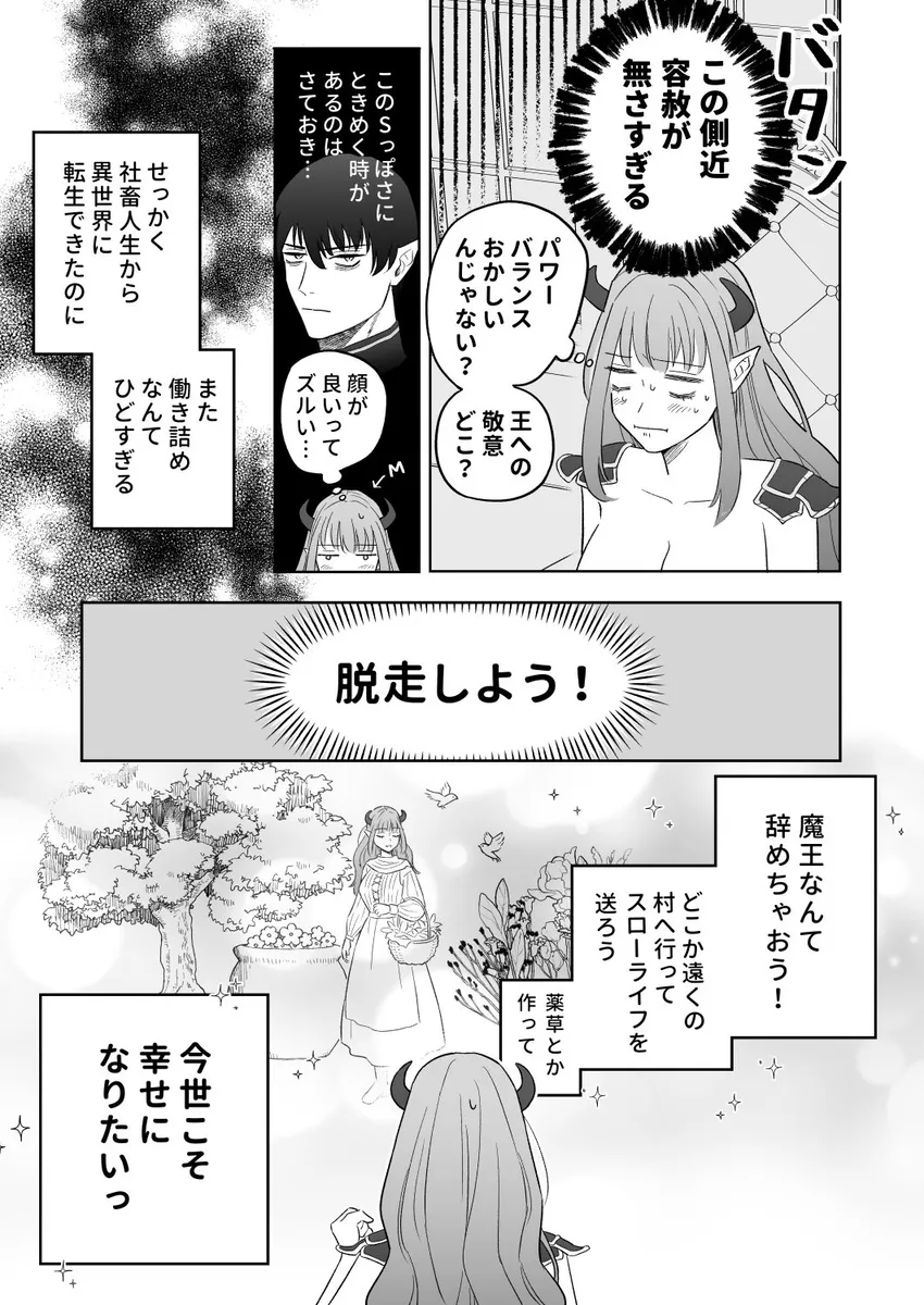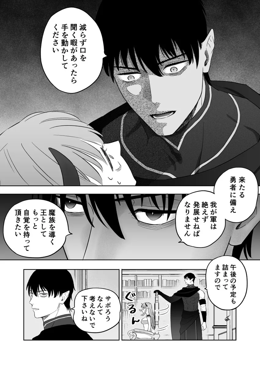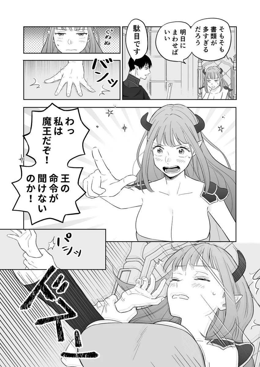 前世は社畜OLをしていた女。それが交通事故によってとある異世界転生しています。転生先は魔王。魔族たちから魔王と慕われ、日々の忙しさに翻弄される。これでは社畜時代と全く変わらない。正直に女はもう魔王を辞めたいとすら思っていた。どこかの村に引っ越してのどかな生活を送りたい。女は、ついの魔王城を抜け出すことを決意。夜の森を彷徨っているとモンスターに遭遇。そこにかけつけた側近のレイノルズに助けられる。レイノルズに素直に魔王を辞めたいと言うと何故かレイノルズが逆ギレ。そして、レイノルズにキスをされて敏感なアソコを攻められると…。
