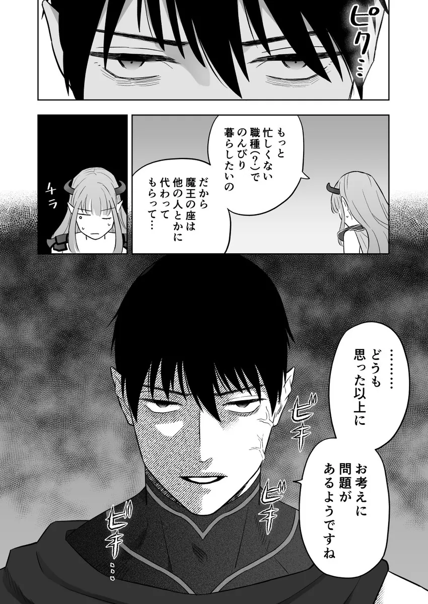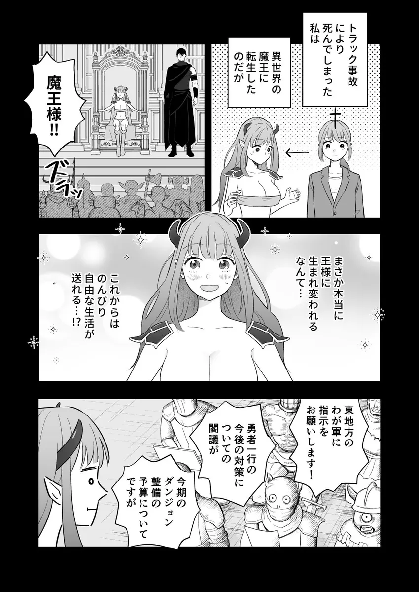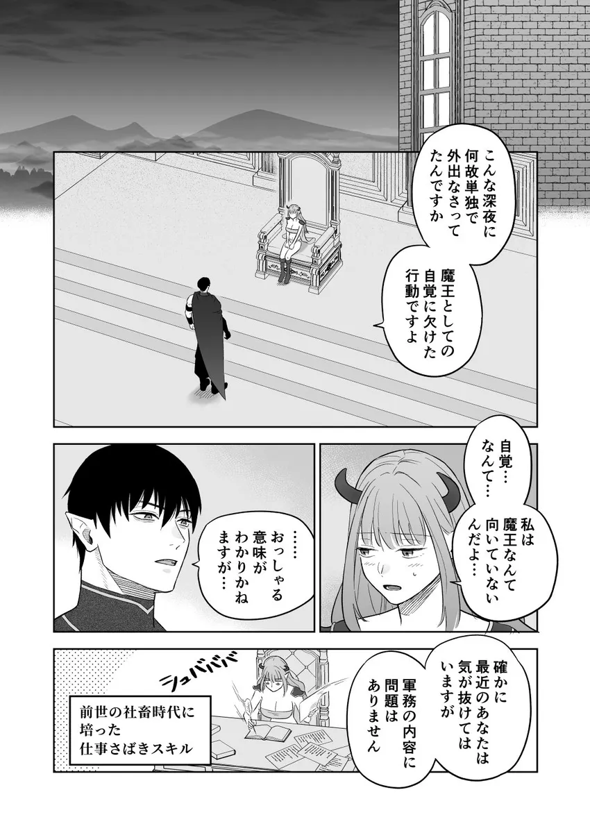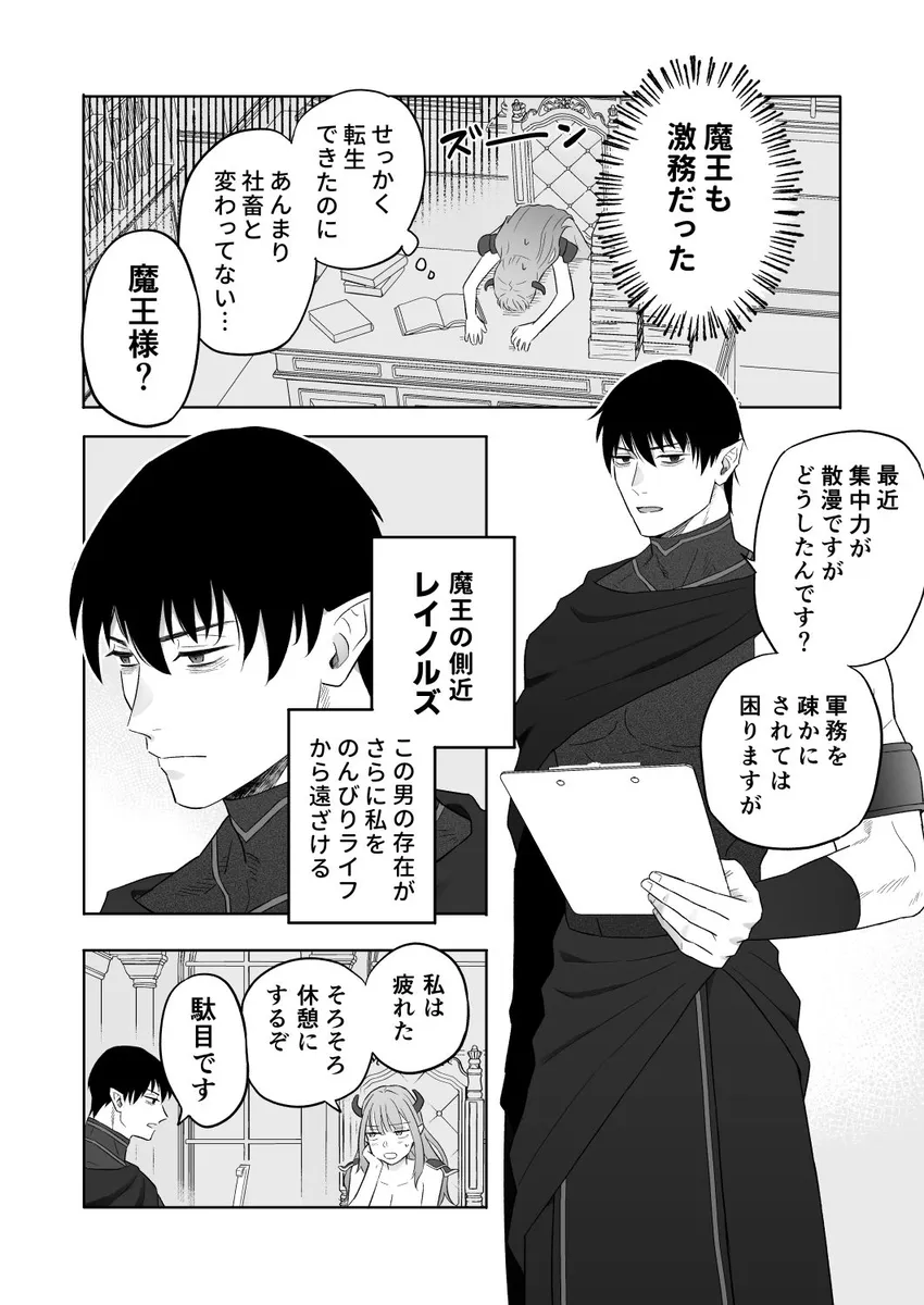 前世は社畜OLをしていた女。それが交通事故によってとある異世界転生しています。転生先は魔王。魔族たちから魔王と慕われ、日々の忙しさに翻弄される。これでは社畜時代と全く変わらない。正直に女はもう魔王を辞めたいとすら思っていた。どこかの村に引っ越してのどかな生活を送りたい。女は、ついの魔王城を抜け出すことを決意。夜の森を彷徨っているとモンスターに遭遇。そこにかけつけた側近のレイノルズに助けられる。レイノルズに素直に魔王を辞めたいと言うと何故かレイノルズが逆ギレ。そして、レイノルズにキスをされて敏感なアソコを攻められると…。