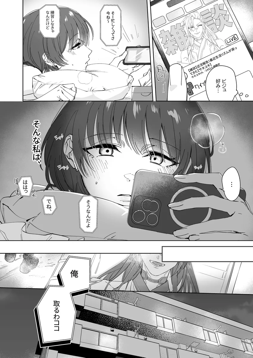 オナニーじゃ誰にも求められない寂しさは発散できない。茉莉は二年間付き合った彼氏に振られた。別れてすぐ友達と飲んだり遊んだりで意外と吹っ切れるのは早かった。しかし、どうしようもなく火照った体が問題だった。その火照りは自分の手で鎮めるしか方法がなかった。その日、茉莉は大学時代の二個上の先輩「宮」の自宅でハマっているVtuberの配信を見ていた。そして、ふと茉莉は宮にセリフ集を言わせることになったのだが…。「じゃあ俺とエッチする?」そのセリフに不覚にも膣キュンしてしまい…。
