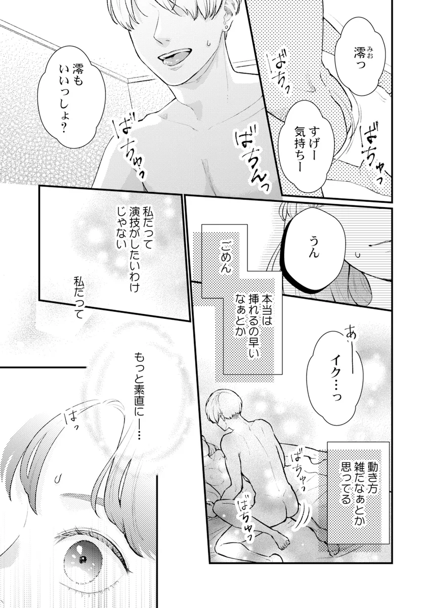 澪は26歳の独身OLだ。元カレとのセックスの夢を見て朝目が覚める。欲求不満なのか、それとも周りが結婚していく焦りなのか、澪にはわからなかった。この日の夜、会社の飲み会に澪も参加する。その中には、シゴデキ上司の藍沢もいた。普段は飲み会になんか参加しない藍沢だった。彼女と別れたという噂もある。酒も回ってその場はお開きに。タクシーに乗る同僚を見送り帰ろうとした矢先、藍沢に抱えられる澪。俺に愛させてくれる?澪は胸キュンしてそのままラブホテルへ。愛撫されて久しぶりの快感に酔いしれる澪。もっと、もっと甘えたい…。