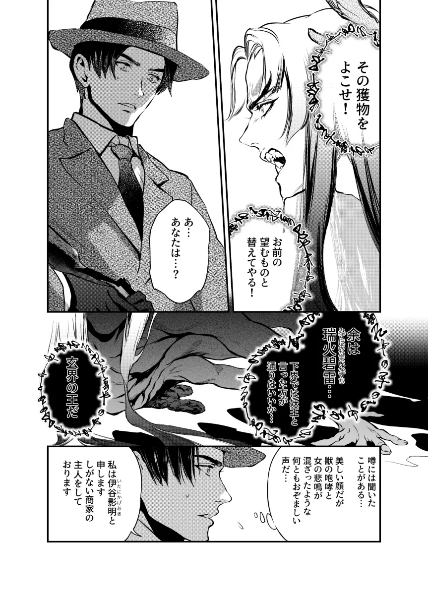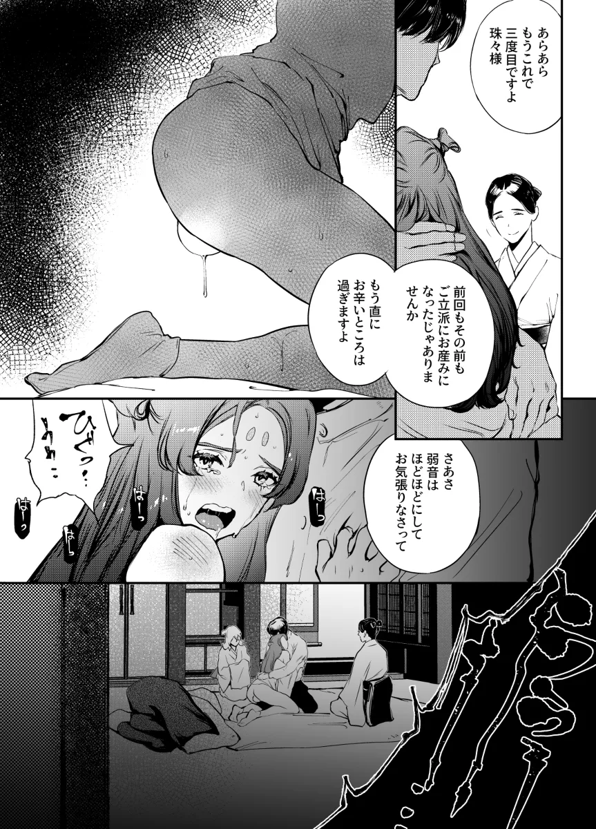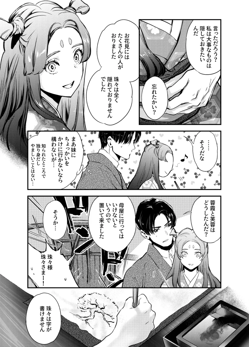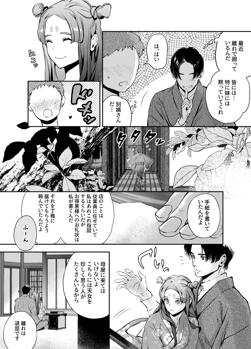 商家の若き主・影明(かげあき)は、ある日、深い傷を負い人の世へ落ちてきた異界の王「妖王」を偶然助ける。後日、その礼として影明のもとに遣わされたのは、黄金の卵を産み、あらゆる病を癒す力を持つという天女・珠々(じゅじゅ)だった。死の病に侵された最愛の妹を救うため、影明は珠々の力を借りる決意をする。しかし、卵を産むには人の男と契りを交わさなければならないという残酷な条件があった。妹の命を守るためと自らに言い聞かせながら珠々を抱く影明と、不本意な運命に戸惑いながらも、彼の優しさに触れるたび心を揺らしていく珠々。繰り返される契りの中で、二人は単なる“救いのための関係”ではいられなくなっていく。命を救うための行為が、やがて互いを想う真実の感情へと変わっていくとき、影明と珠々はそれぞれの運命と向き合うことになる――。